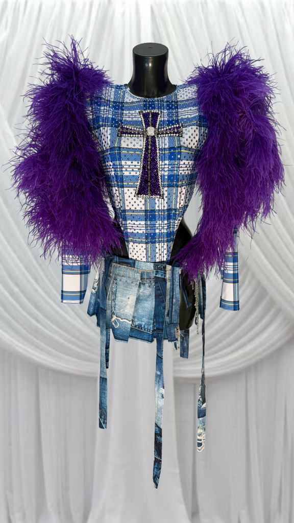 CROSS LONG SLEEVE BODY SUIT WITH PURPLE FEATHER